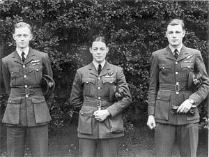 Three of the crew from first tour with 12 Squadron Pilot Jimmy Wright, Bomb Aimer Doug Tattersall and Navigator Eric Sanders