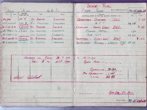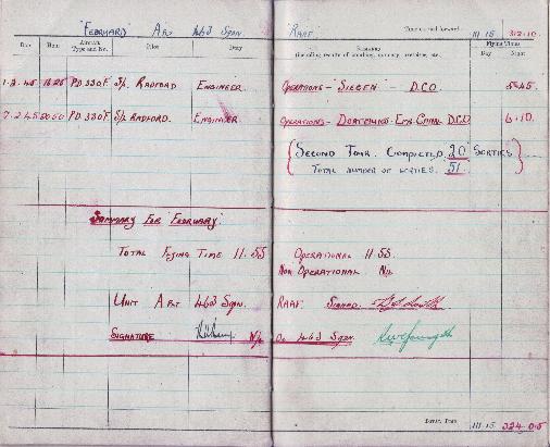 Second tour completed giving a total of 51 sorties 111 hours 15 mins day time flying and 324 hours 5 mins. night time flying.